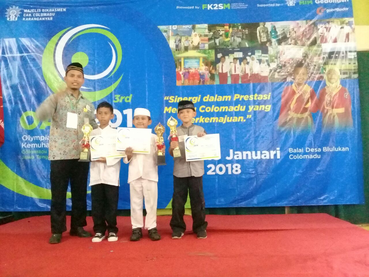 Awal tahun 2018 menjadi catatan berharga bagi SD MPU dalam Olimpiade Al Islam dan Kemuhammadiyahan (AIK) tingkat Kecamatan Colomadu. Bertepat di Balai Desa Blulukan pada hari Sabtu 13 Januari 2018, SD MPU mampu menyabet beberapa kategori kejuaraan dalam Olimpiade AIK tahun ini.